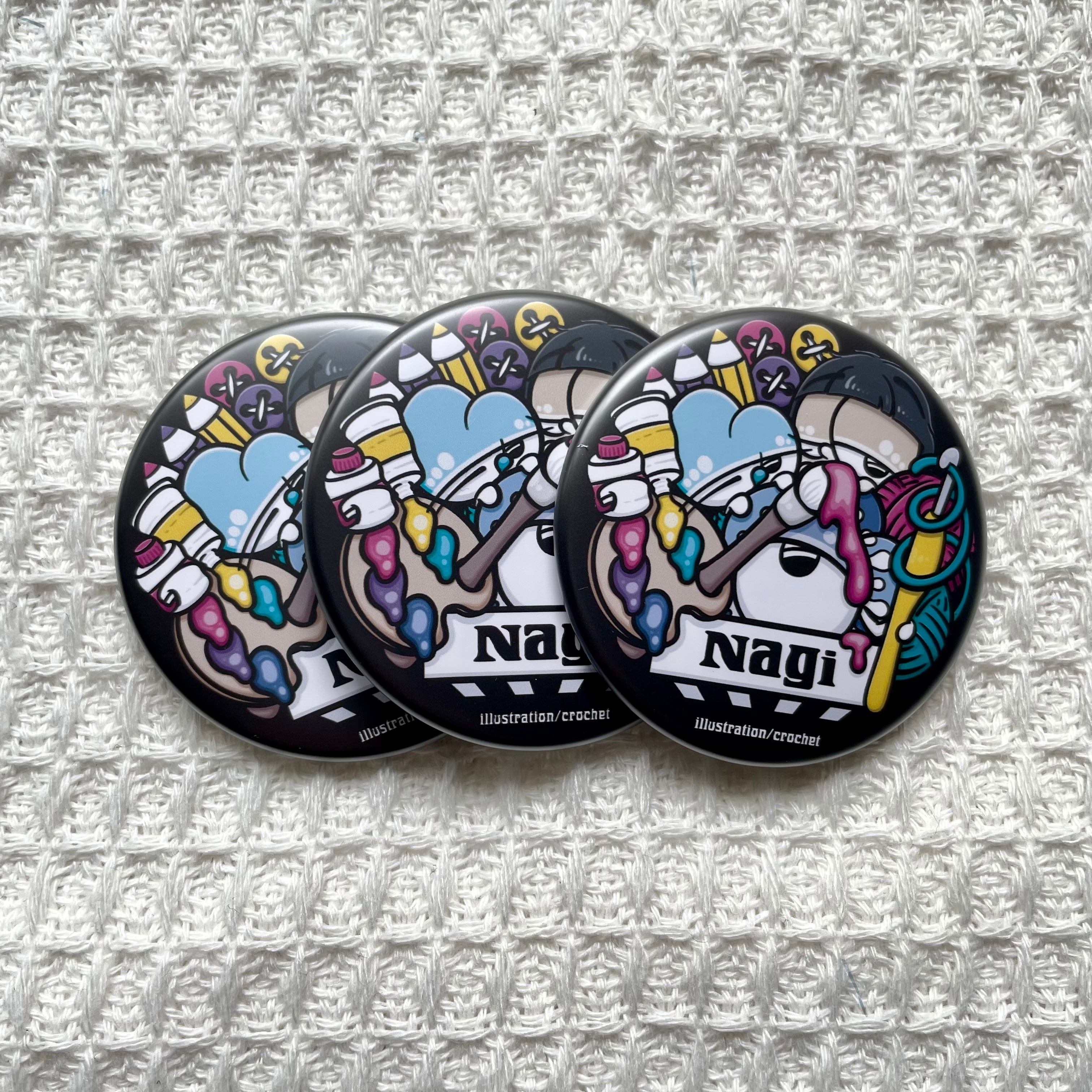 Nagiの要素をふんだんに詰め込んだぎゅぎゅっとイラストを缶バッジにしました!