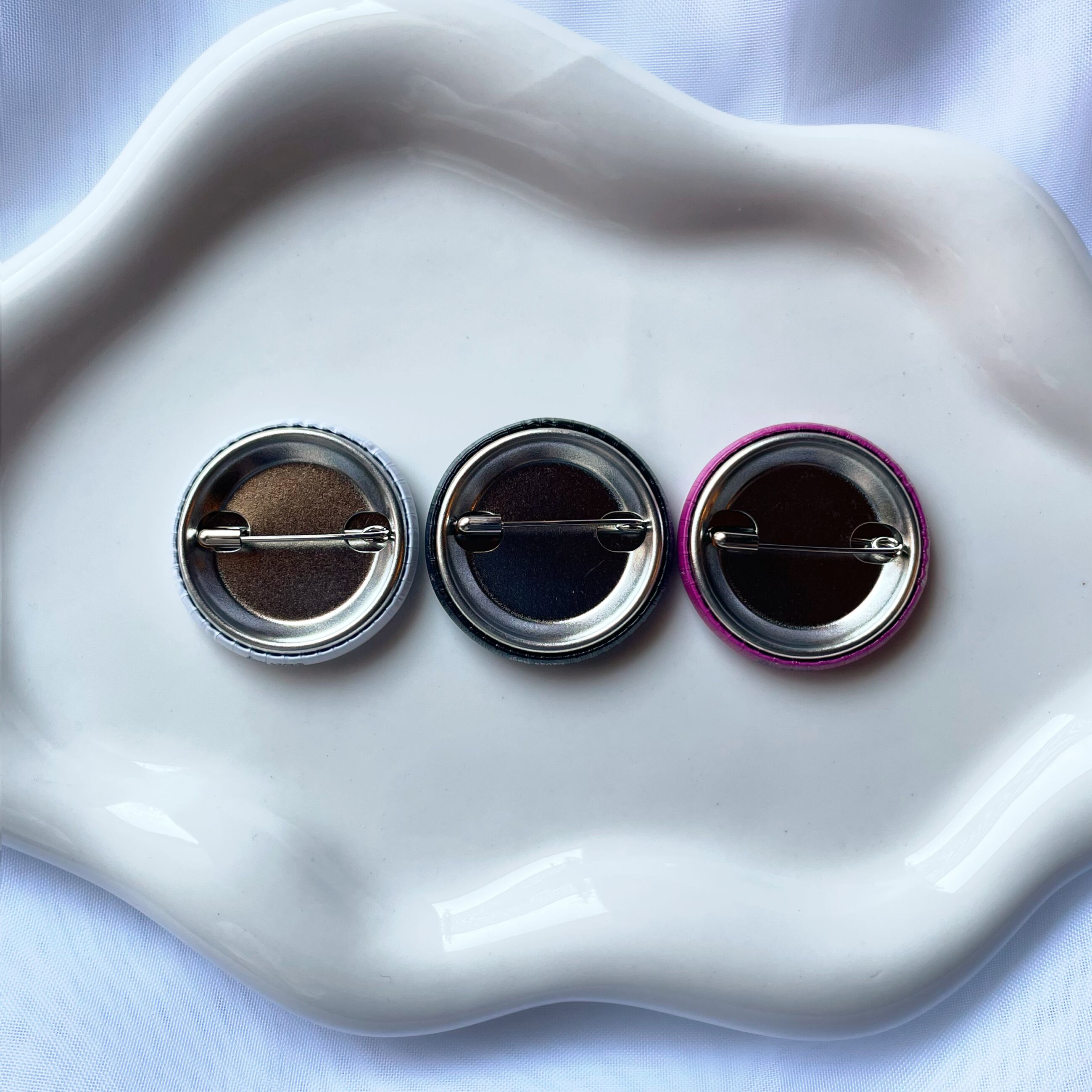 マットな素材となっているので、普段使いのバッグ等に馴染みやすい缶バッジです。